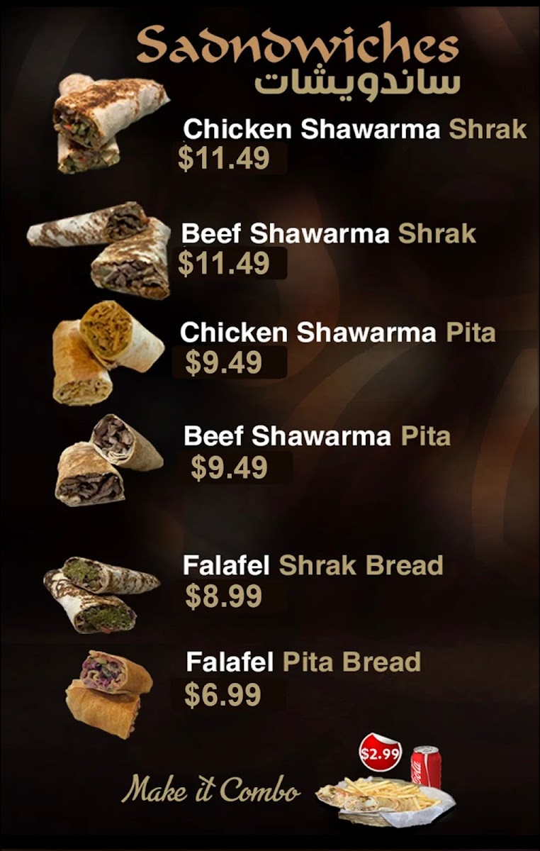 Freshly cut beef shawarma on our famous Shrak bread.